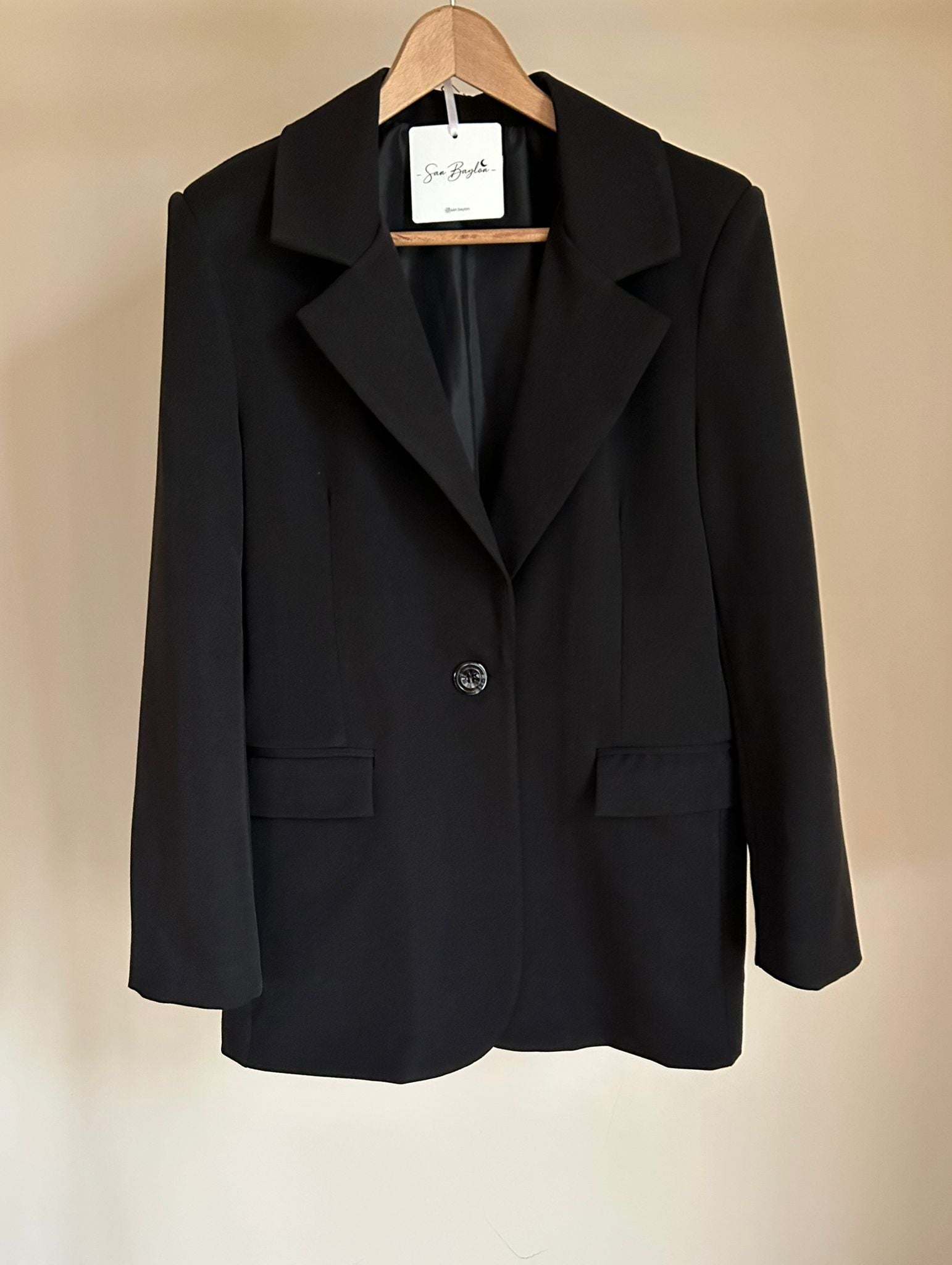 Linea dritta e pulita, un bottone singolo per slanciare la figura, collo a revers classico e tasche a pattina.