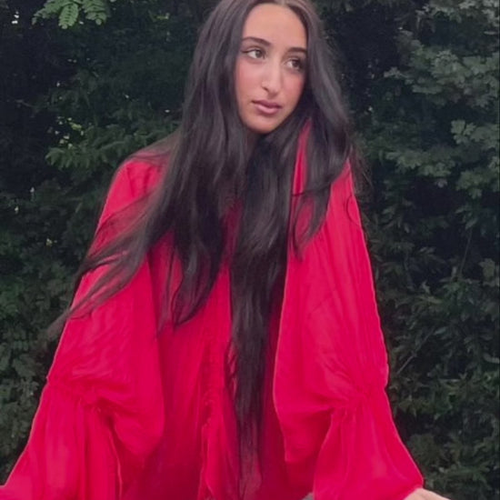 Camicia oversize vestibilità comoda, manica a palloncino morbida e fluida colore rosso acceso.
