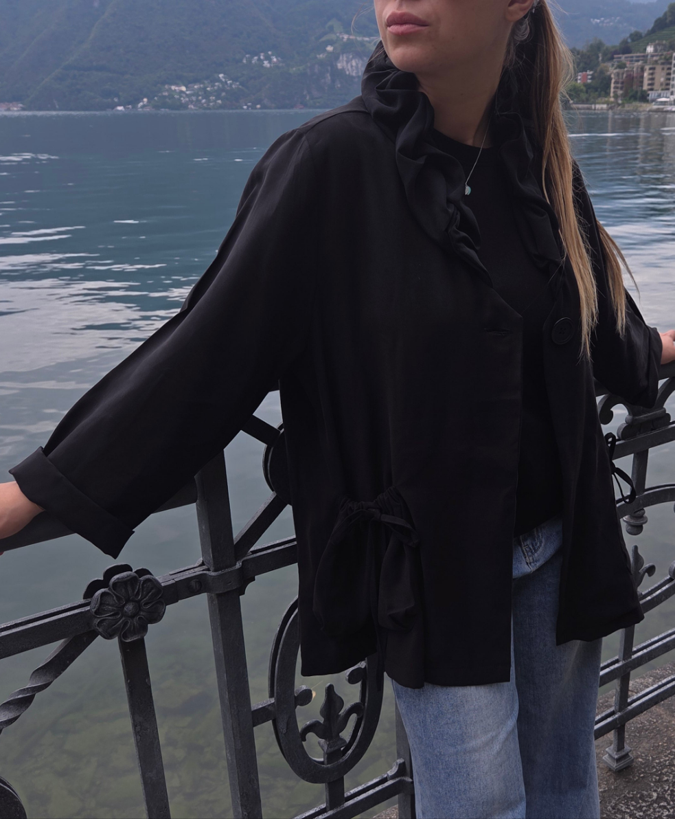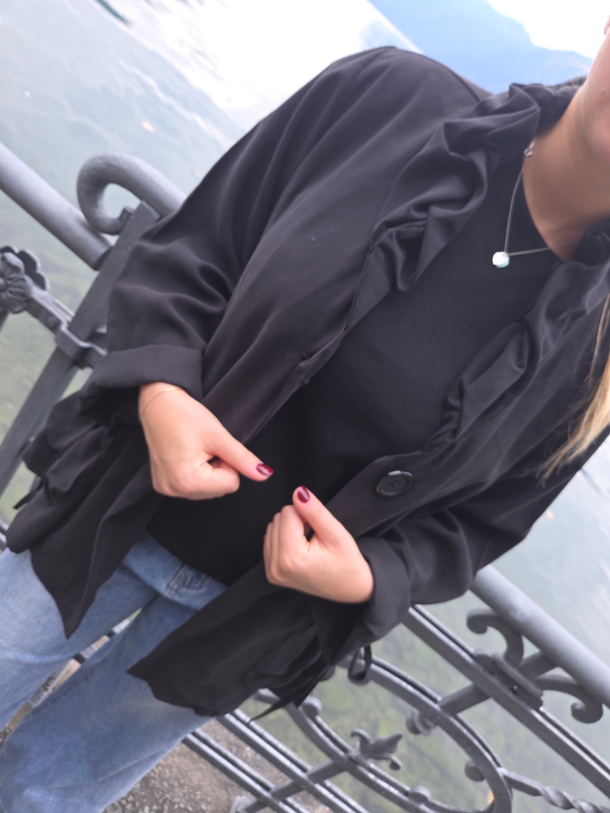 Giacca in cotone ideale per la mezza stagione, vestibilità comoda. Colore nero lavato