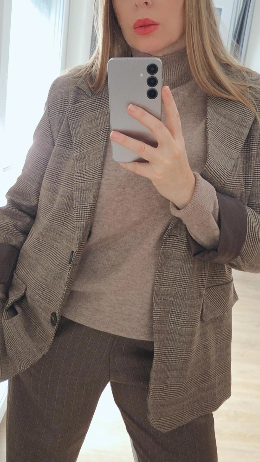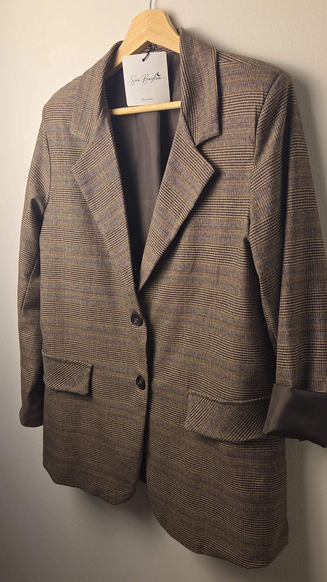 Giacca principe di Galles dal taglio maschile taglia unica, vestibilità dalla 38 alla 44