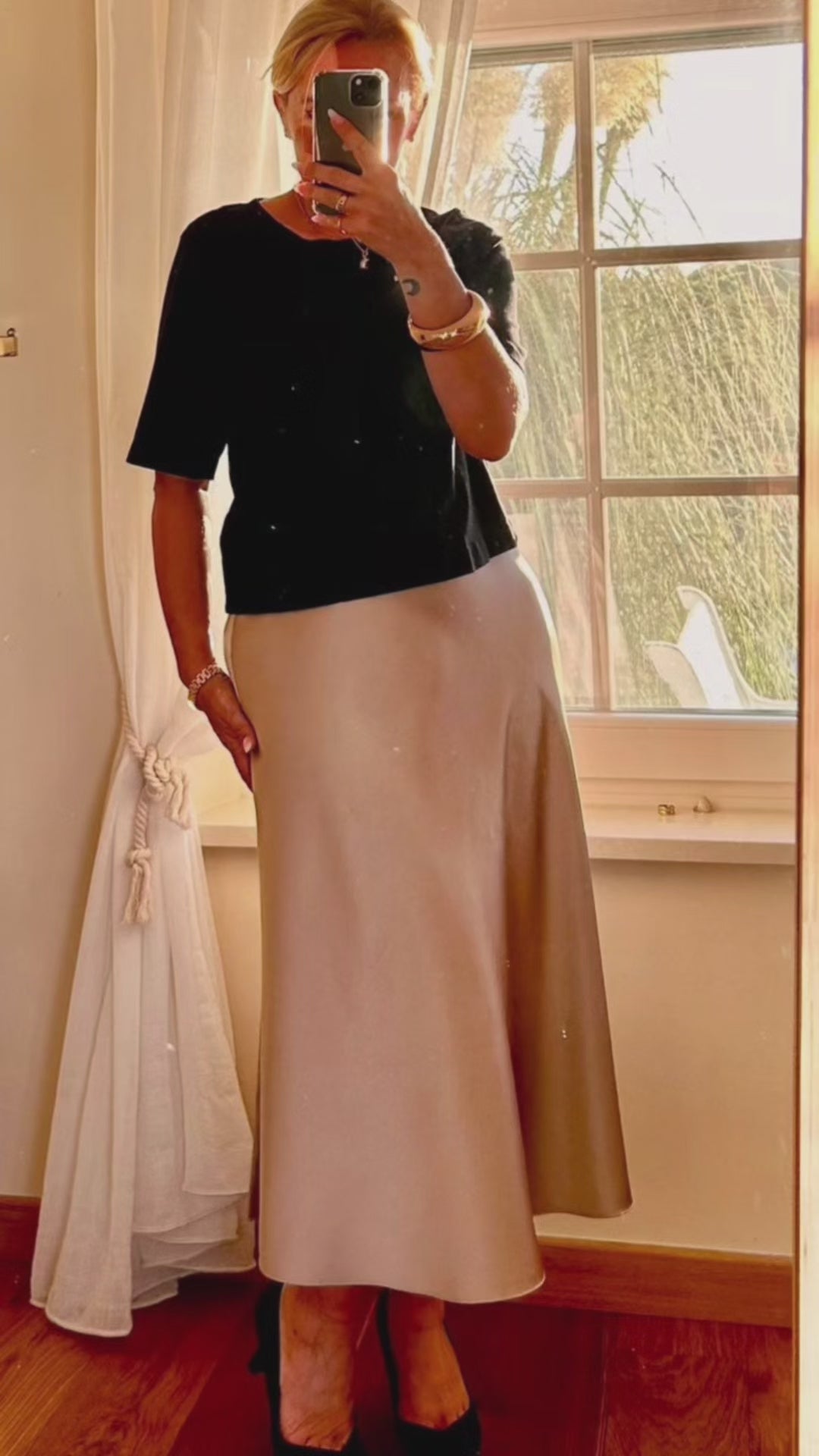 Gonna viscosa 100% spessa non segna presente variante Beige e marrone